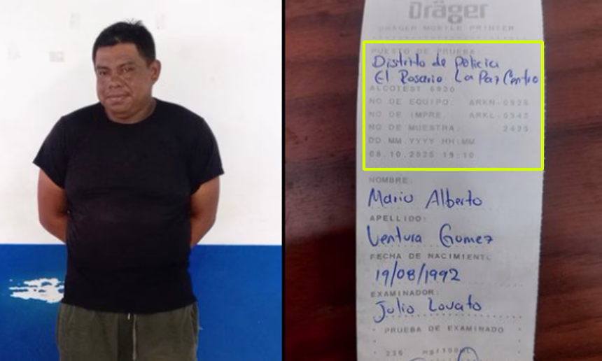 Tras una revisión de documentos las autoridades de la PNC procedieron a realizarle una prueba de alcotest, la cual arrojó 235°.
