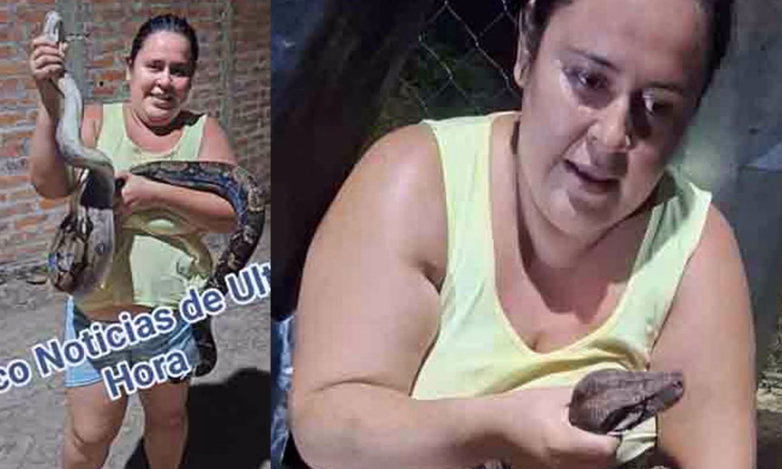 Una salvadoreña se ha viralizado en redes sociales porque atrapó a una serpiente de grandes proporciones en el occidente del país.