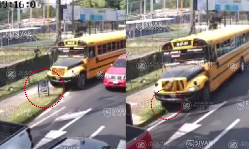 El alcalde de San Salvador Centro, Mario Durán, expuso la situación a través de sus plataformas digitales, donde denunció que el conductor, en un intento por sobrepasar a otros vehículos, terminó invadiendo la acera.