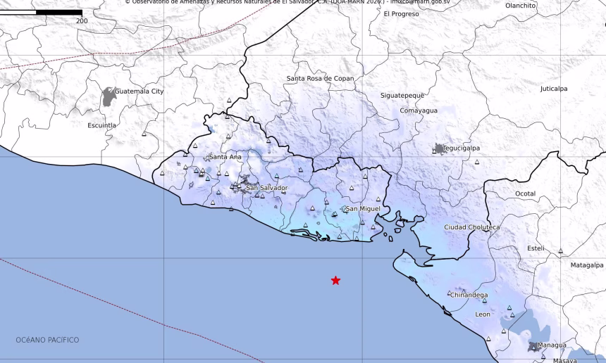De acuerdo con información del Ministerio de Medio Ambiente y Recursos Naturales (MARN), el epicentro del sismo se localizó frente a la costa de Usulután, a unos 44 kilómetros al sur de la playa El Espino.