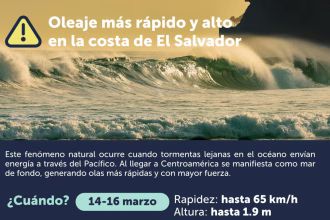 MARN advierte sobre oleaje alto y acelerado en la costa salvadoreña por mar de fondo