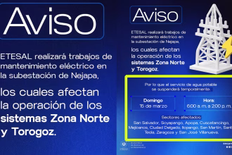 Suspensión temporal del servicio de agua por mantenimiento eléctrico en subestación de Nejapa