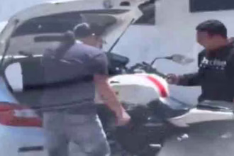 Viralizan video de motociclista que intenta guardar su moto en el baúl de un carro