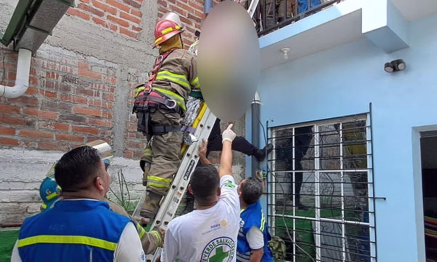 Elementos del Cuerpo de Bomberos de El Salvador acudieron al lugar y lograron descender al trabajador desde el techo donde había quedado tras el accidente.