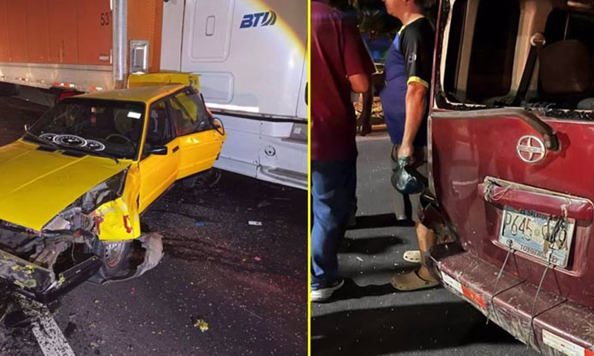 El percance involucró a un tráiler, un taxi y un vehículo particular tipo sedán. El hecho ocurrió en el kilómetro 17½ de la carretera Panamericana, a la altura del distrito de San Martín, en el municipio de San Salvador Este.