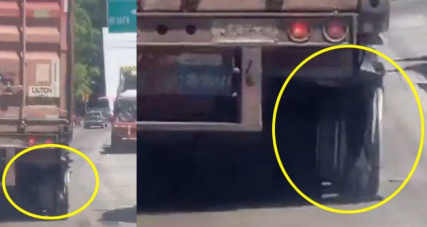 Usuarios de redes sociales denunciaron al conductor de una rastra, manejando sin una de sus llantas traseras.