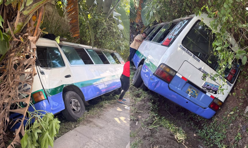 Elementos de Cruz Verde Santa Anita atendieron una emergencia vial en el km 9 de la autopista a Comalapa, donde una coaster colisionó contra una cuneta.