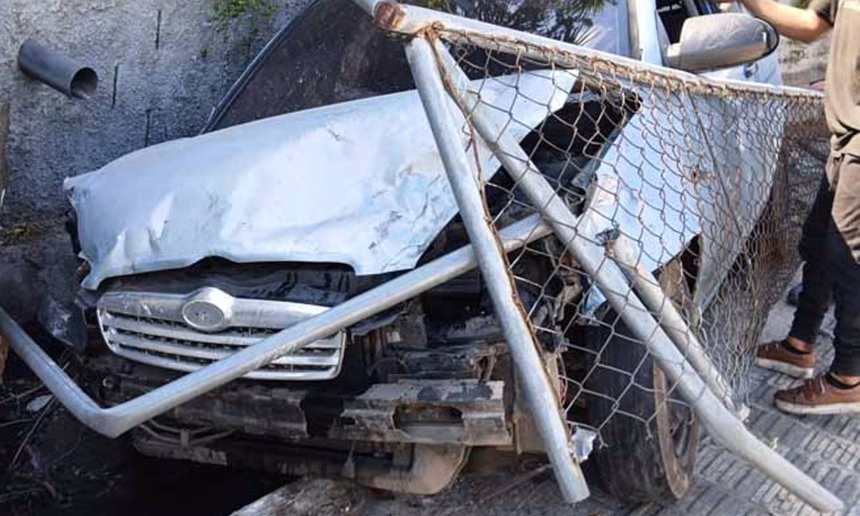 De acuerdo con el informe preliminar, el percance no dejó personas lesionadas, aunque sí provocó daños materiales considerables tanto en el automotor como en las gradas que permiten el acceso a una zona residencial.