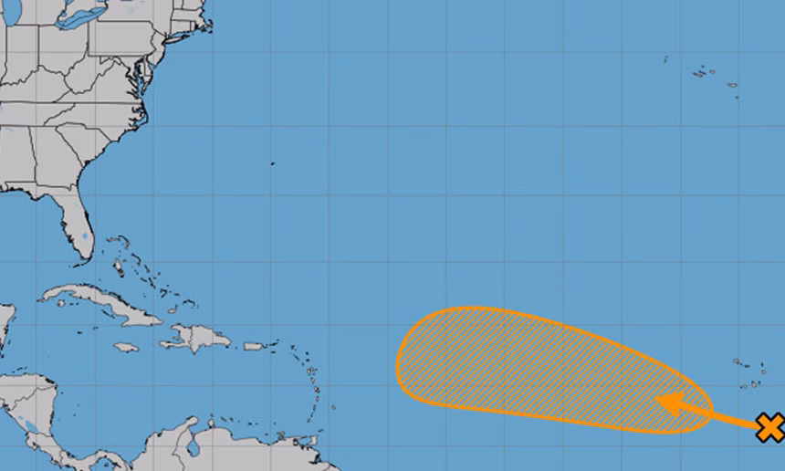 Actualmente, se “desplaza de oeste a oeste-noroeste a alrededor de 24 km/h a través del Atlántico tropical”, detalló el NHC.