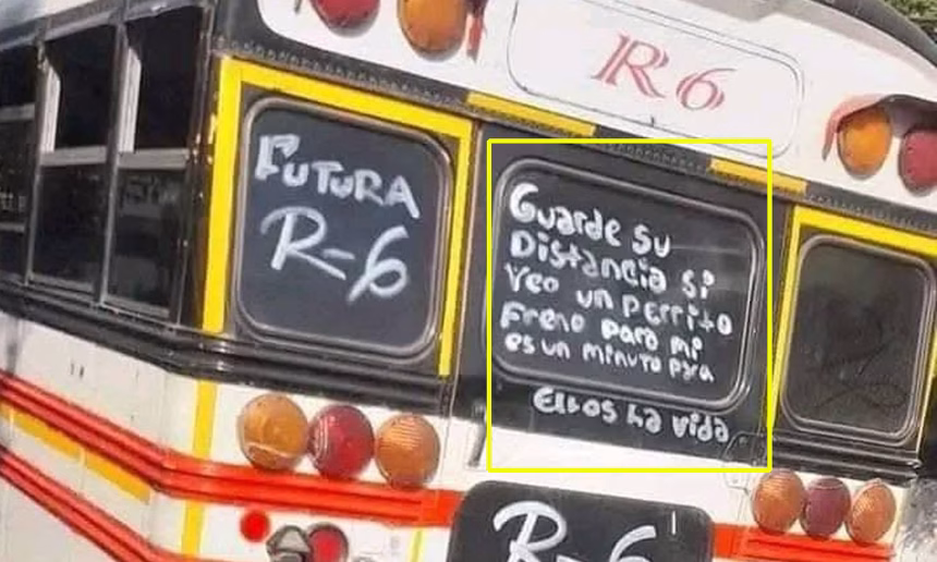 En redes sociales compartieron la imagen de un busero de la ruta 6 en la que invita a otros conductores a cuidar a los perritos que viven en la calle.