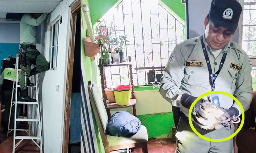 El marsupial, común en zonas semiurbanas del país, fue descubierto por los fuertes ruidos en el cielo falso de la vivienda.