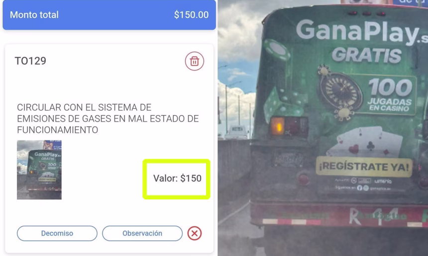 De acuerdo con la institución, la infracción está tipificada como falta TO 129, la cual contempla una multa de $150 según la normativa vigente.
