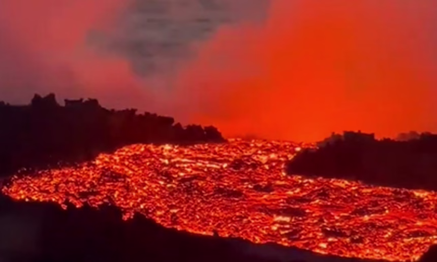 Videos colocados en redes sociales muestra la forma tan impresionante que los desechos volcánicos avanzan hasta llegar al océano.